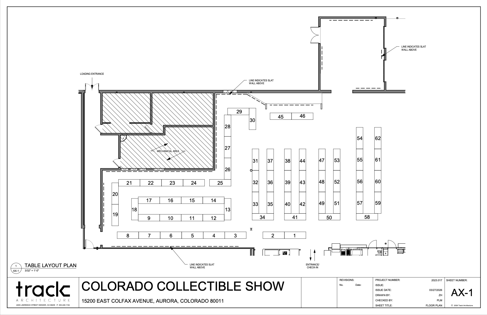 62 tables for vendors to choose from, with slat wall on our perimeter spots